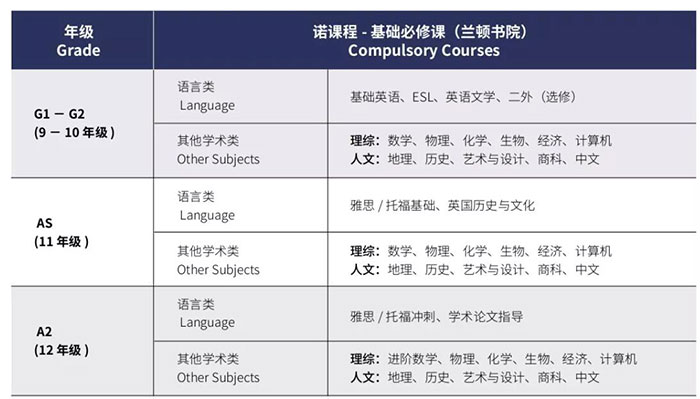 上海诺思兰领学校面向8一11年级学生开设成熟的2一4年制IGCSE、A Level课程,为丰富和多元学生视野与发展需求,学校针对学有余力的学子另开设AP谍程作为选修。