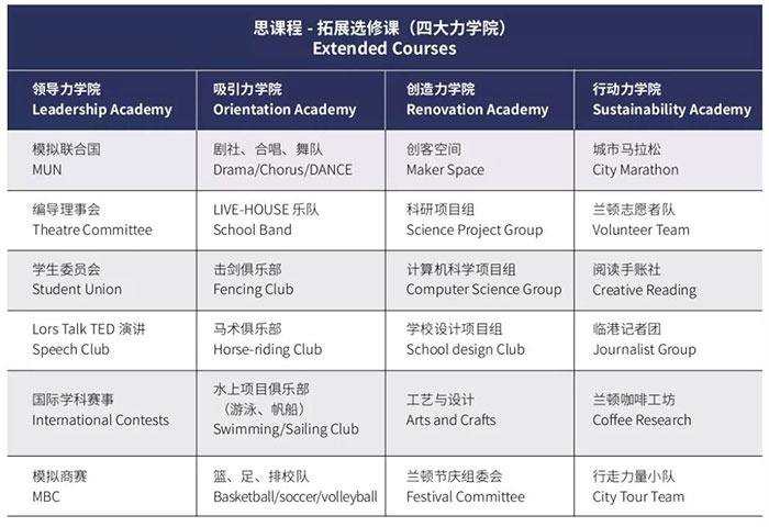 学校重磅打磨一套“诺思课程系统”,即:以“夯实基础为机身、科技人文为双翼、体验实践为动力”,以实现“全人教育”。学校实施“学院制”+“导师制”办学模式,设立“一书院+四学院”∶兰顿书院、行动力学院、领导力学院、创造力学院、吸引力学院;每位学员分配双导师跟踪高中生涯始终。