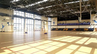 作为莘庄地区为数不多的大型室内场馆,可同时进行2场篮球赛或6场羽毛球赛,功能齐全(可满足乒乓球、羽毛球等训练需求),还有百人观众席等高端配套设施。全场落地玻璃设计,光度充足。一楼还有铺有专业赛道的击剑馆、整墙镜子的排练室。
