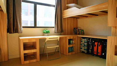 宿舍:学校建有酒店式学生公寓,4-6人间,环保家具,内设高标准卫生间,科勒卫浴,中央空调,24小时热水