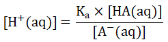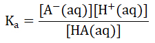 对于一种弱酸HA,其浓度一般被表示为[HA(aq)],它对应的共轭碱为A-,浓度表示为[A-(aq)],弱酸解离常数表示为Ka。