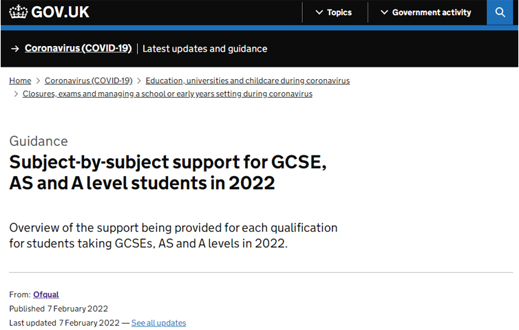 由于Covid-19影响,部分学生学业受阻,为了使2022年6月考季不那么艰难,让学生更好的集中精力复习他们所选的科目,2022年2月7日公布了夏季考试的Advance Information(预先信息),即相关科目的考试重点内容。但需要注意的是,预先信息不会涵盖所有考试内容,而且仅适用于2022年夏季考试。