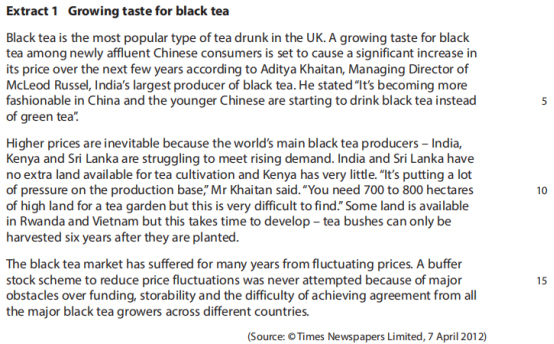 第三步:逆向思维,black tea的供给有可能会是inelastic的(这里是结合题目中的暗示),或者是uncertain(这里是需要自己结合行业背景进行合理发挥)。