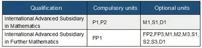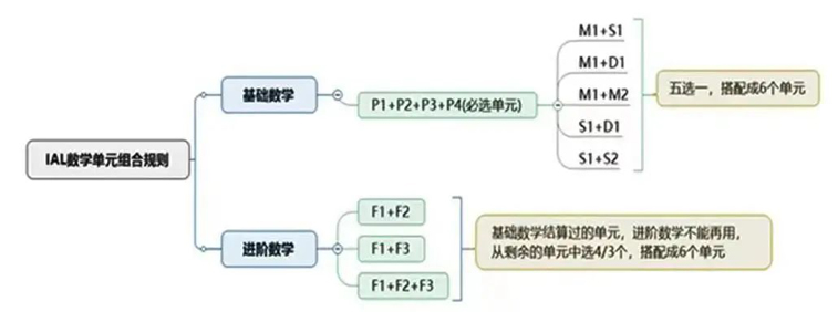 IAL数学共有14个单元:P1、P2、P3、P4、M1、M2、M3、S1、S2、S3、D1、F1、F2、F3,基础数学和进阶数学各需要6个单元才能最终结算取得证书。