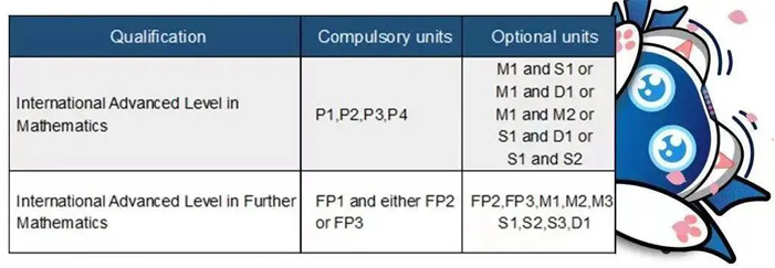 爱德思考试局的International Advanced Levels数学相关课程总共有三个科目,分别为基础数学(Mathematics)、进阶数学(Further Mathematics)和纯数学(Pure Mathematics),由于纯数在单元的选择上与基础数学、进阶数学有所重复,中国学生常考的科目为基础数学和进阶数学,以下就基础数学和进阶数学的单元选择做一个分析讲解。