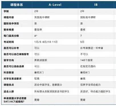 A-Level和IB的学制均为2年,难度方面,IB要大于A-Level,因此,对学生要求会更高一些,适合英语好,综合能力强的学生,而A-Level适合所有想去英联邦国家读书的学生,建议想去英国留学的同学们,选择A-Level。