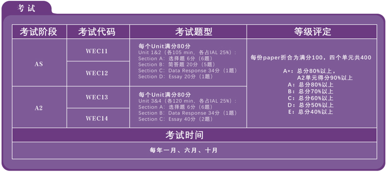 爱德思的A-Level经济考试分为4个单元,考试题型包括选择题、简答题、Date Response、Essay等几个部分,其中,最难的部分是Essay,想要在这部分拿到不错的分数,需要迅速找到关键词,比如表示总结、简述等字眼的词汇,利用关键词法来解答相应题目。