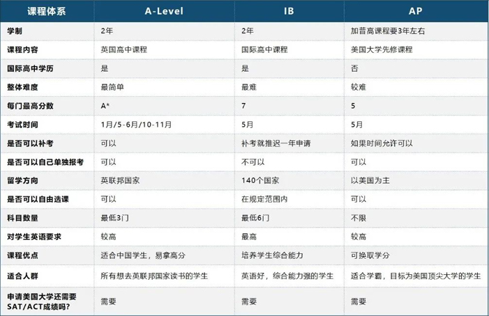1、对比AP、IB等国际课程