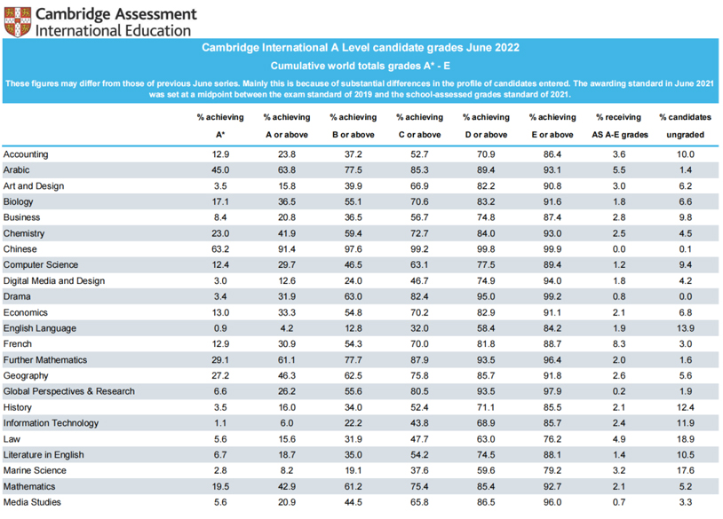 CAIE 2022年A-Level夏季大考A*率终于出炉!