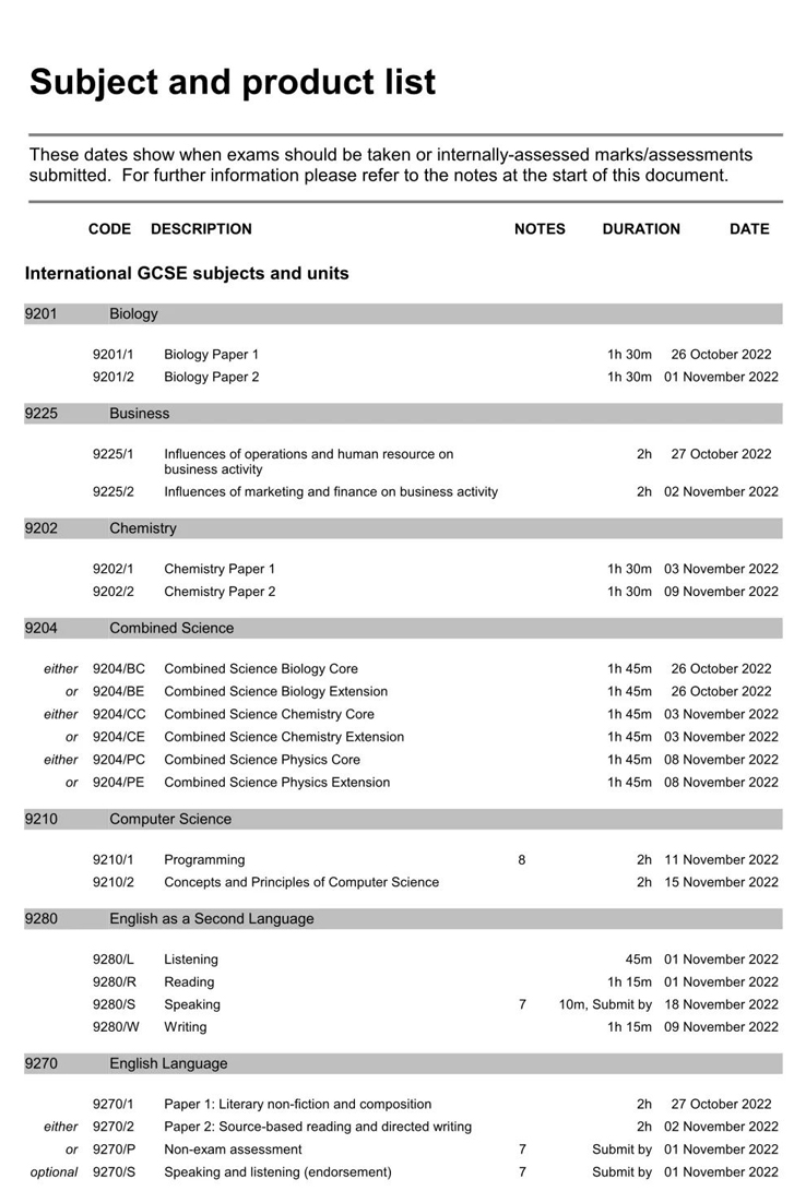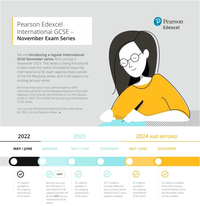 从2023年始,爱德思将在11月考试中提供24个科目。但在2023年1月将继续举办考试,这也是国际GCSE系列最后的一月考试。