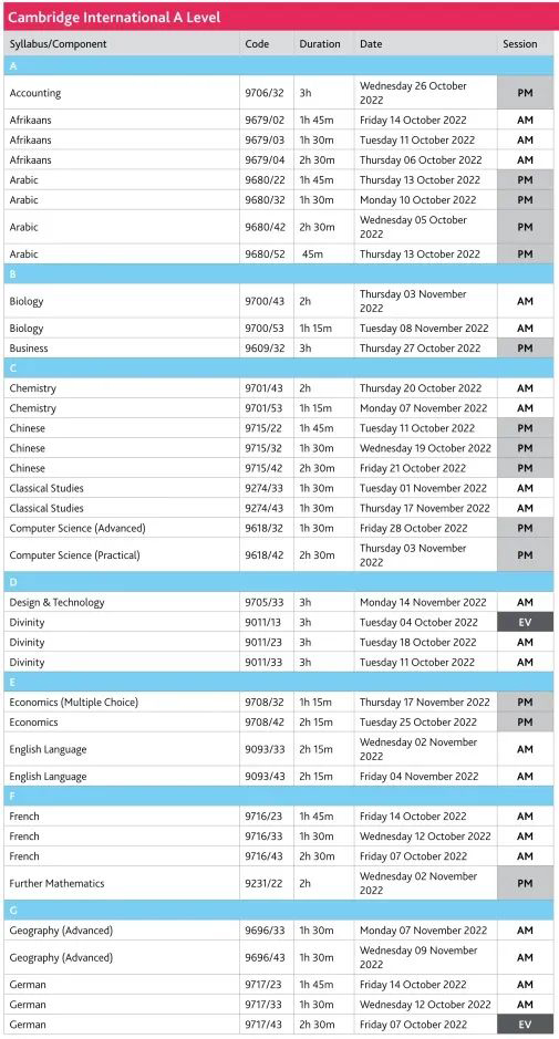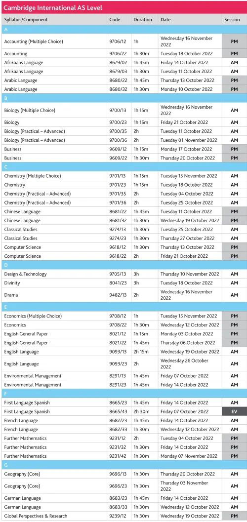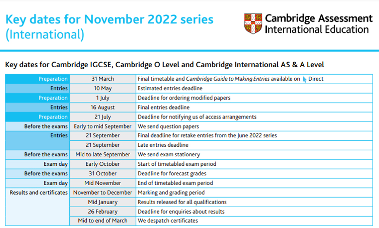 今年CAIE秋季大考日程,官方给出的时间线还是很清晰的,涉及时间点如下: