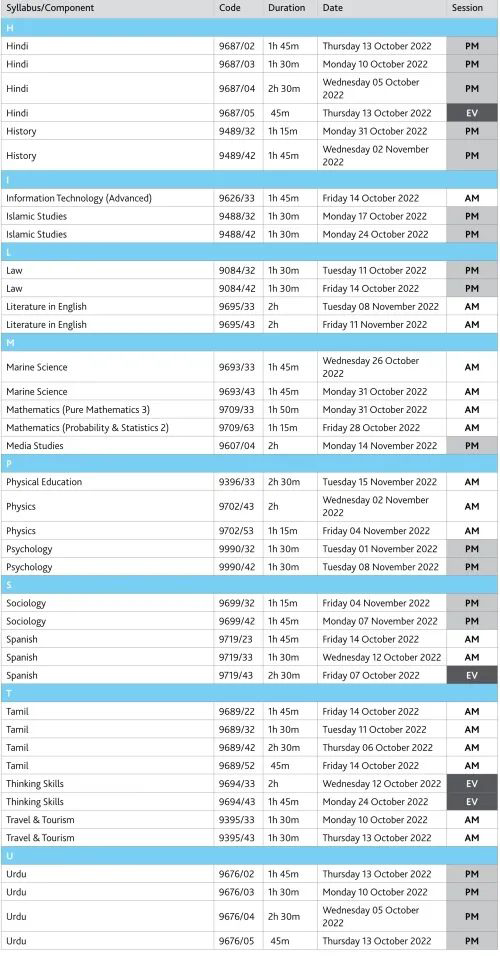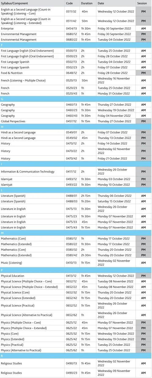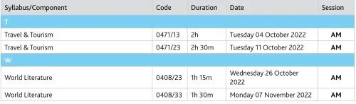 2022 IGCSE秋季考试时间:10月24日-11月14日