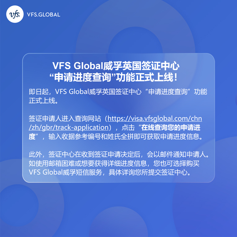 此外,签证中心在收到签证申请决定后,会以邮件通知申请人。如使用邮箱困难或想要获得详细进度信息,您也可选择购买VFS Global短信服务,具体详询您所提交申请的签证中心。