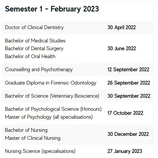 阿德莱德大学的个别专业目前公布了申请截止时间,看下图: