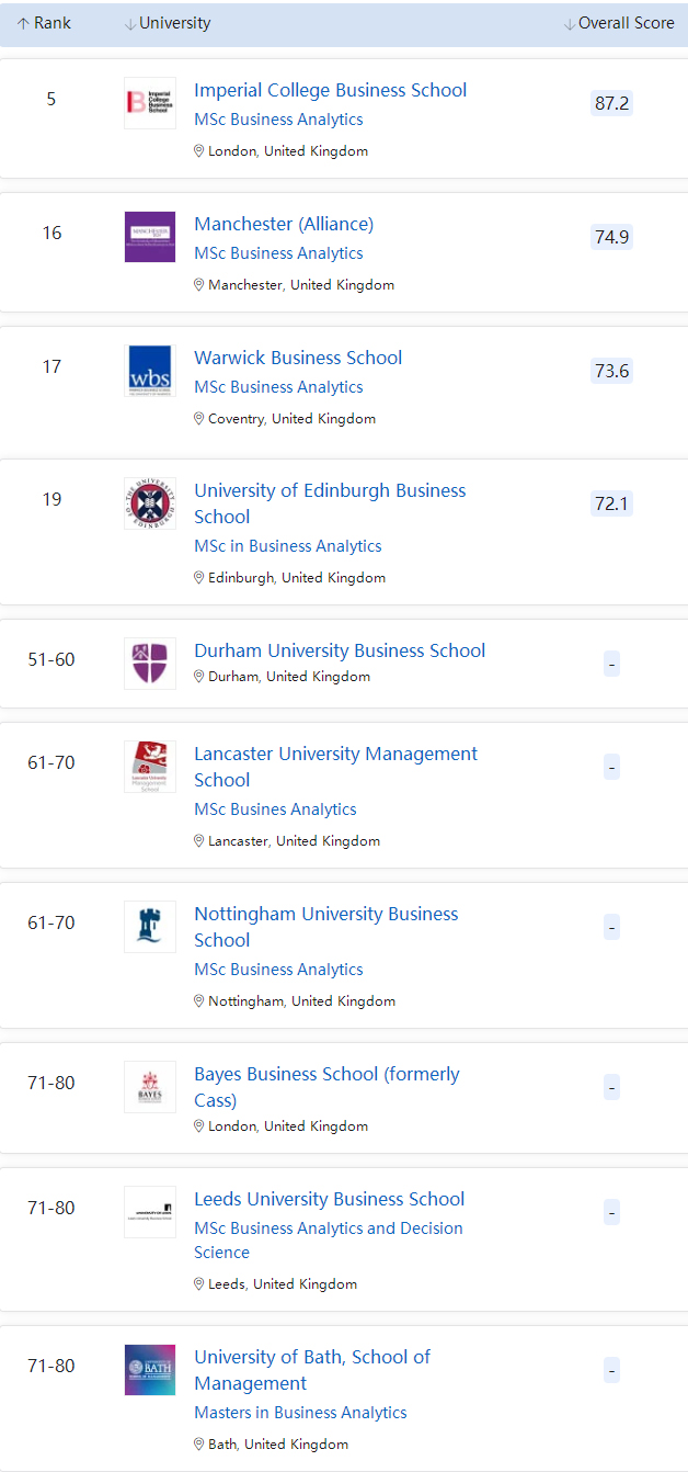 ⭕️ 帝国理工商学院(ICBS)在“商业分析”和“市场营销”两个学科拿到英国第一名;