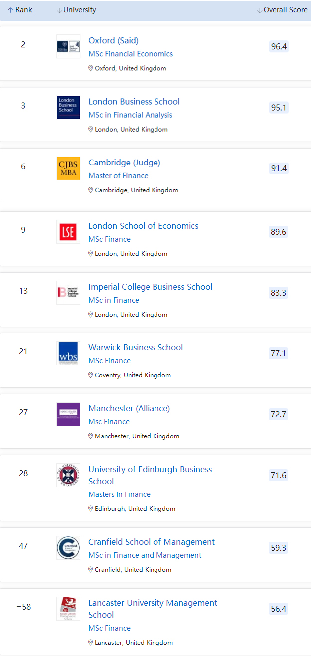 ⭕️ 牛津和剑桥大学商学院只有两个学科在英国TOP10榜上,都是金融学硕士;