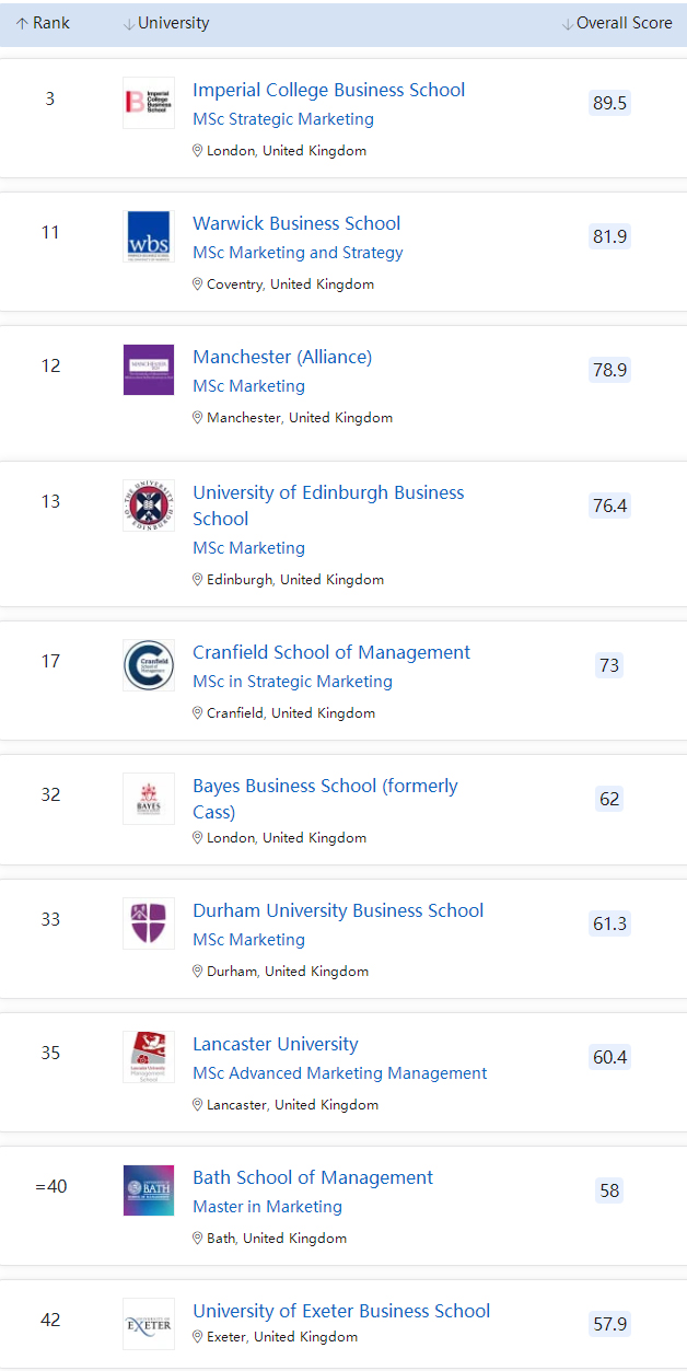 ⭕️ 埃克塞特大学商学院(市场营销TOP10)、布鲁内尔商学院、肯特商学院(供应链管理TOP10)今年是第一次上榜商科硕士排名英国TOP10榜单;