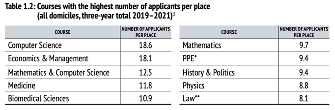 其中,计算机科学接近12人竞争1个offer,是2021年申请季中剑桥大学竞争最大的专业。
