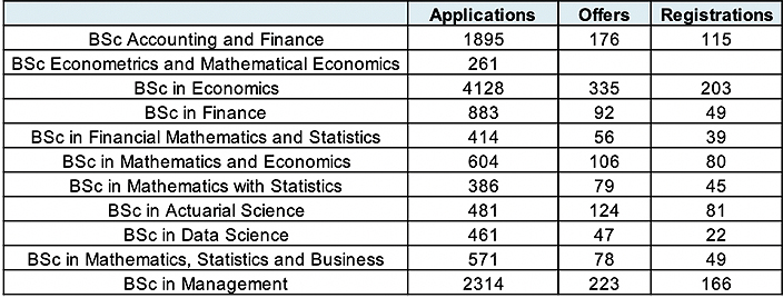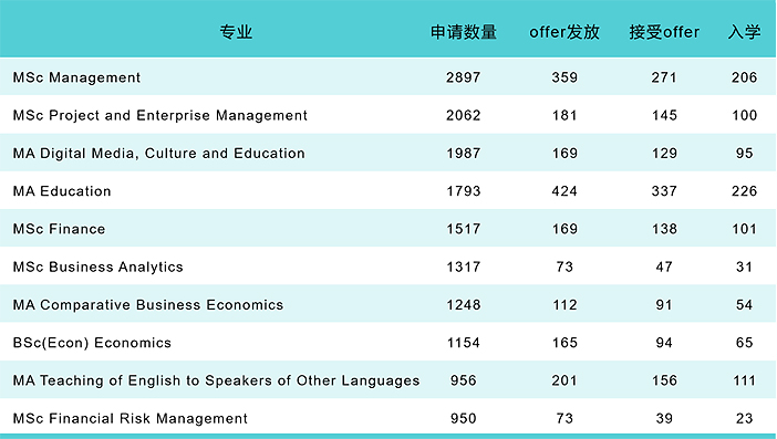 其中经济类专业申请人数超过了4000人,排名第一,该专业近12人竞争一个offer,是LSE竞争力最大的专业。
