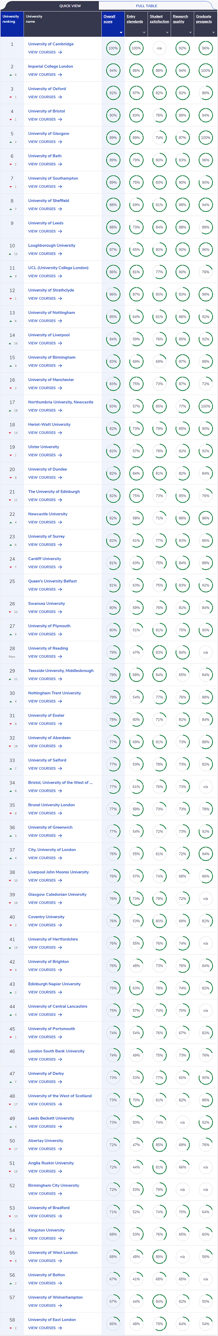 CUG完全大学指南在发布2022英国大学排名时,也同步更新了涵盖74个专业领域的专业排名。