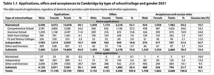 与2020年入学季相比,申请剑桥大学的人数增长了11.6%,但发放offer数量下降了9.6%,并且最终录取人数下降了8.4%。