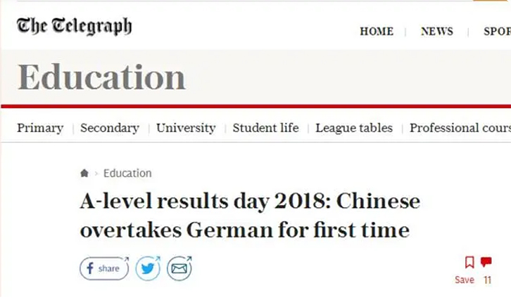 从2018年以来,A-Level中文考试人数激增!早已超过德语,成为英国第三大流行语言!