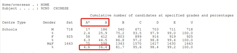 如上图,近两年的爱德思考试局AL中文考试中,得A*的概率只有4.6%,得A的概率为36.4%。