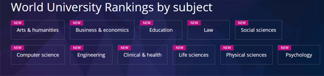 今年泰晤士学科排名共包含了11个广泛学科领域,分别是