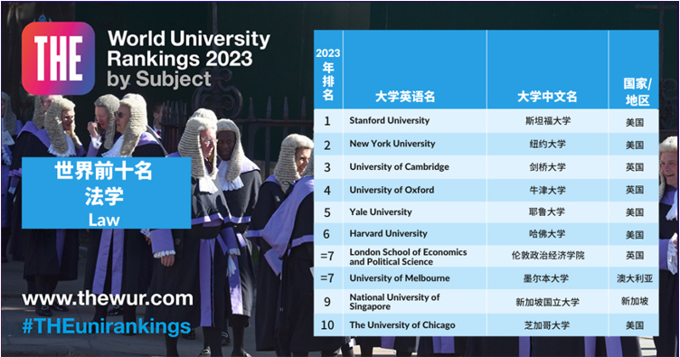 在美英院校主导下澳洲墨尔本大学冲进第七,新加坡国立大学第八名,美国芝加哥大学重新进入前十,从第13名上升至第10名。