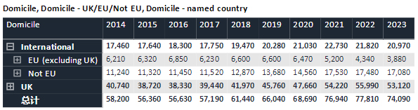 其中,英国本土申请者人数为53120人,欧盟申请人数为3880人,其他国际申请人数为17080人。