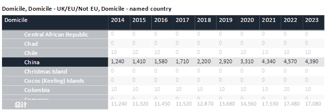 虽然申请牛剑以及医学专业的中国大陆学生人数有所下降,但是纵观UCAS全球数据,中国大陆依旧是除英国本土之外申请人数最多的国家。