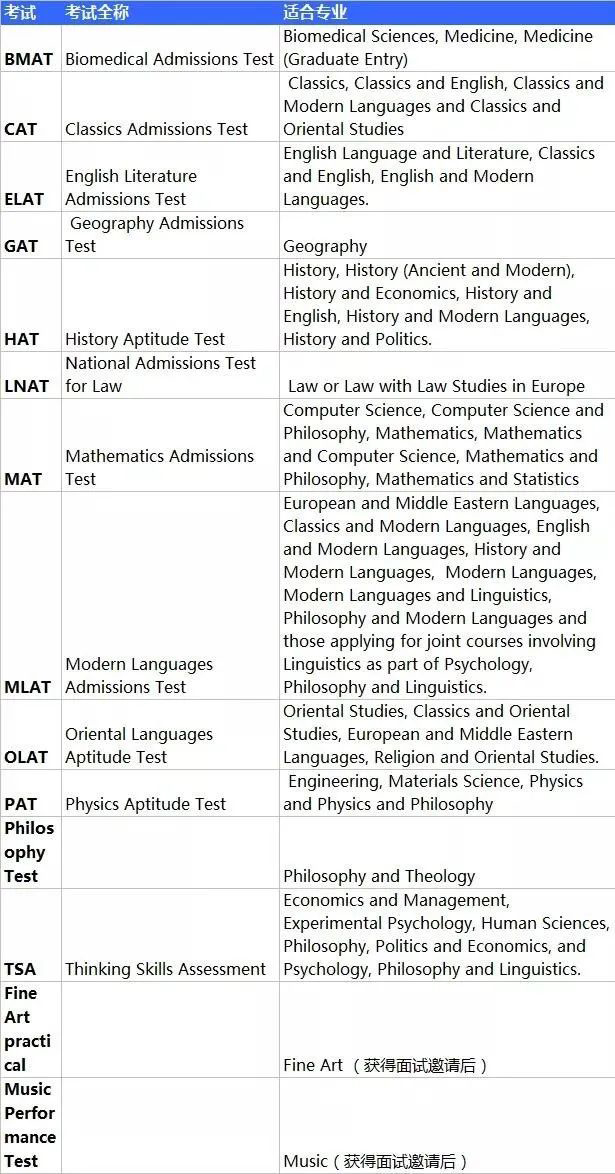 由上图可知,牛津大学入学考试类型十分丰富,涉及多个专业,在14种考试类别中,后面两个艺术类的考试类型,需要接到面试邀请后才能进行相关的测试。
