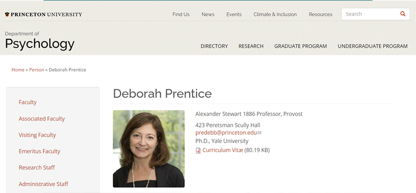 Prentice教授是一位著名的心理学家。从1988年开始就在美国普林斯顿大学担任心理学讲师,后来在心理学系担任了12年系主任。