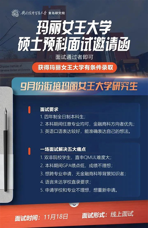 根据对外经济贸易大学与英国玛丽女王大学签订的合作协议合作举办硕士Pre-master国际课程项目,该项目招生对象主要为中国正式的四年制大学本科应、往届毕业生。