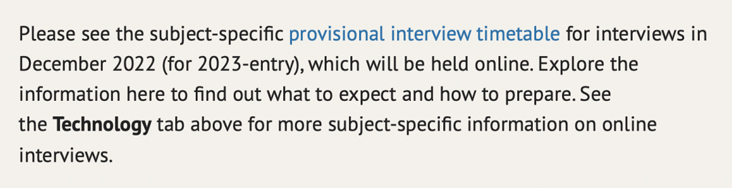 另外,有少数申请者可能会在面试期结束后参加1月份的进一步面试。一般会在11月底通知入围的申请者具体时间安排,这也意味着部分申请者可能会在正式面试的前一周才收到邀请,建议大家提前准备,合理规划时间。