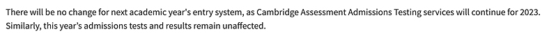 对于明年申请牛剑G5的同学们不必担心,照旧准备申请即可。因为CAAT将会在2023年继续组织相应的大学入学笔试,也就是说下一年的申请流程不会发生改变。