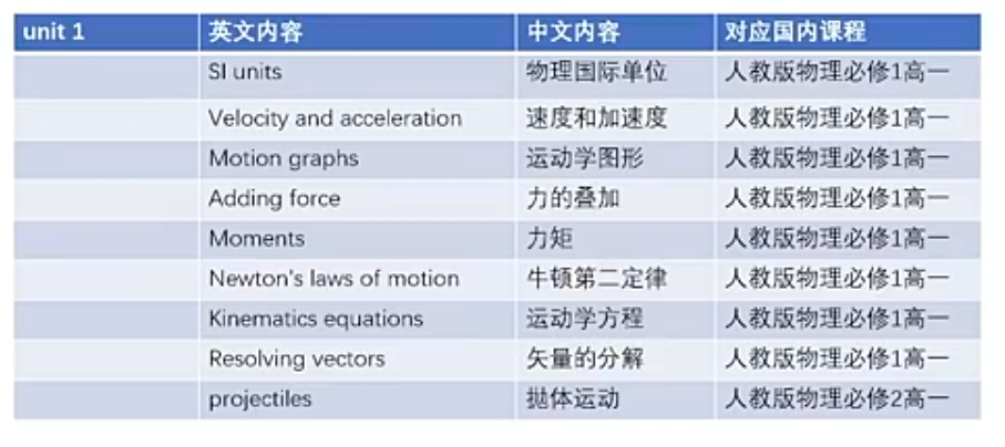 上图A-Level物理U1单元所学内容与高中物理基本对应。