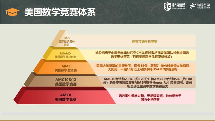 顶级的数学竞赛。在美国上千种数学竞赛中,AMC是唯一个用来选拔参加IMO