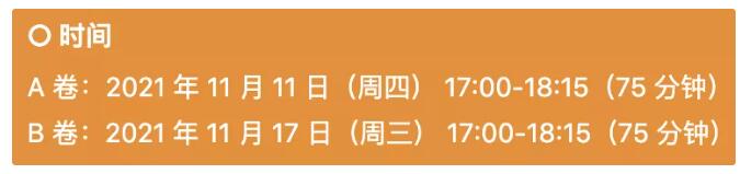 A卷:2021年11月11日(星期四) 17:00-18:15(75 分钟)