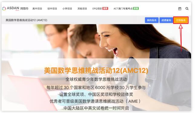 考虑到不少考生希望可以同时报名AMC考试,有一个报名细节大家可以注意一下:如果AB两场都报名,在AMC China的报名页面上可以选择报名AMC12(A卷+B卷);在ASDAN阿思丹的官网学则需要分两次报名,即提交两次报名,分别支付,报名后可以在「我的报名」处查看。