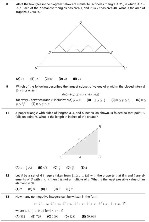 从考试真题方面来看,AMC竞赛会考以下类型题目: