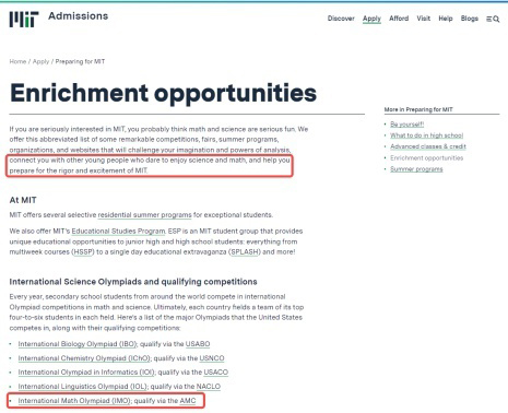 美国麻省理工学院(MIT)就表示,鼓励申请本科的学生参加各类数学竞赛,国际数学奥林匹克竞赛IMO便包括其中。而参加IMO,首先就要在AMC中获得优异的成绩。
