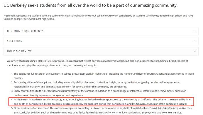 美国加利福尼亚大学伯克利分校(UCB)没有对竞赛做出明确的要求,但在官网中表明会综合考虑学生各方面素质,包括学生相关的学业成就。