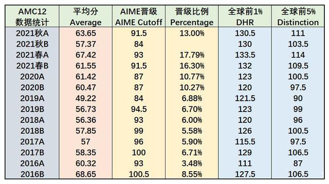AMC12历年晋级线