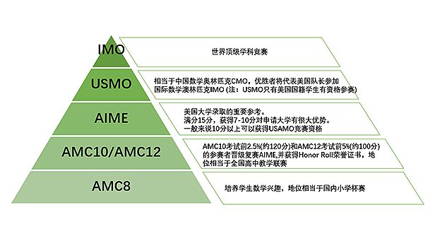 AMC考试包括AMC8、AMC10、AMC12、AIME、USJMO、USAMO。