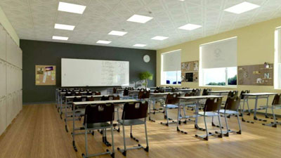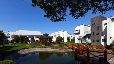 学校为独立全封闭花园式校园,占地60亩,12栋功能教学楼,公园环绕,田径足球场,3个篮球场,2个网球场,标准游泳馆,健身房,乒乓球馆,羽毛球馆,化学和物理实验室等,同时提供星级自助餐式食堂和两人间宾馆级学生宿舍。