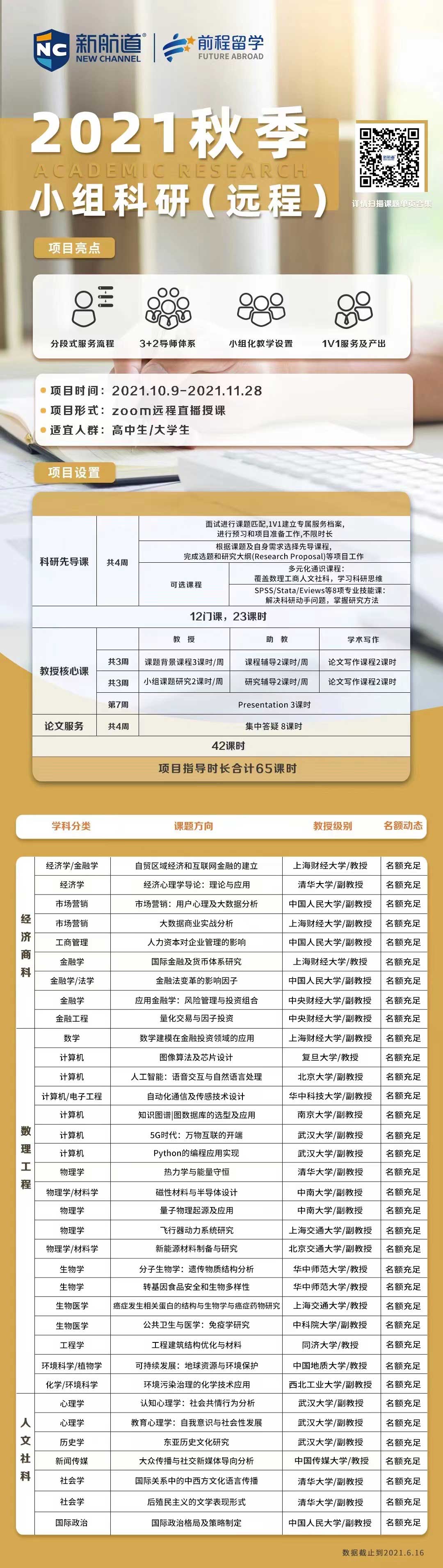 2021年秋季学术背景提升项目(远程)
