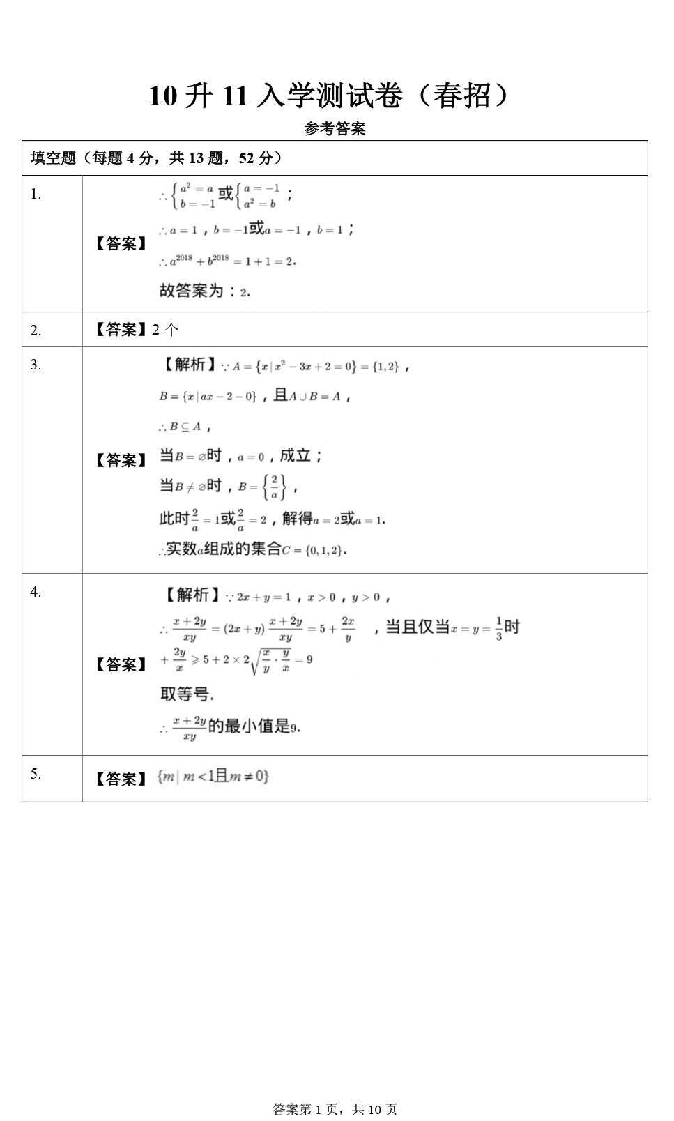 接下来我们一起来看一下"上海国际学校春季招生10升11入学测试数学卷-答案(中文)版"