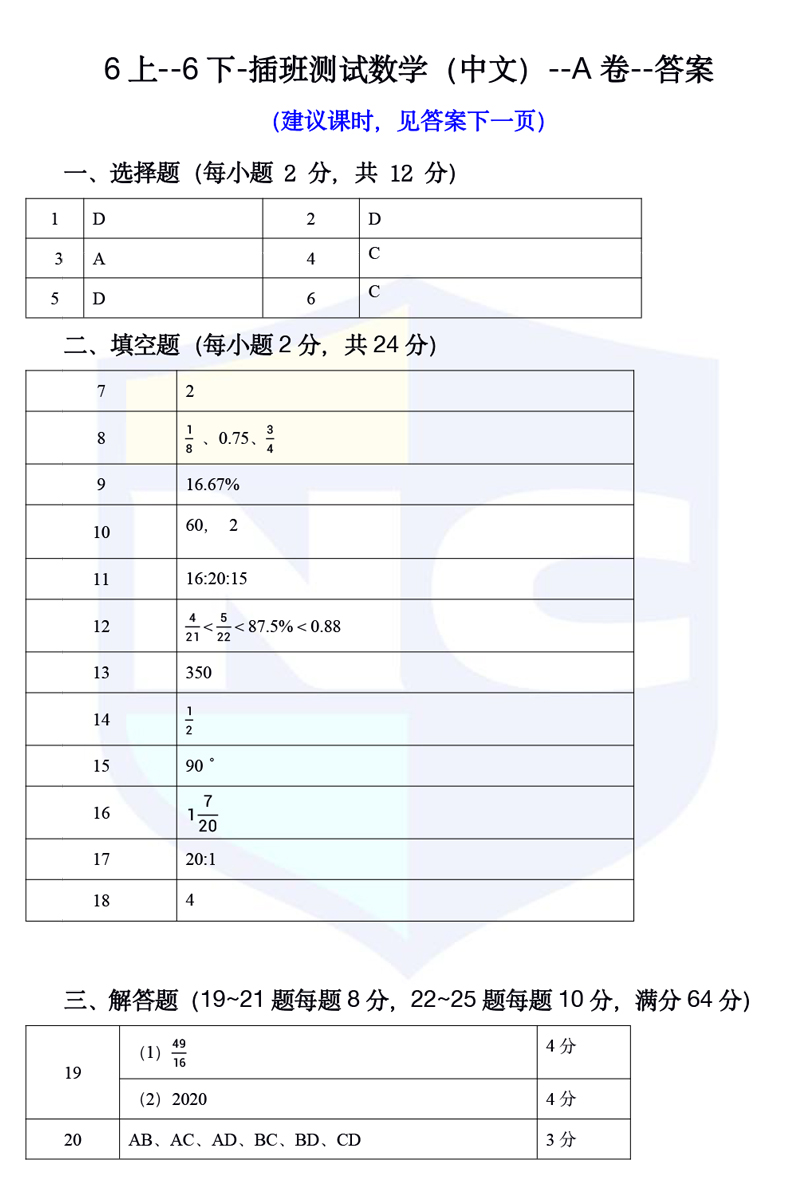 本文标题:上海国际学校6(上)-6(下)-插班测试数学A卷-答案(中文板)