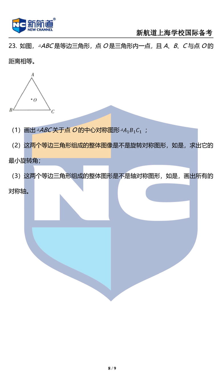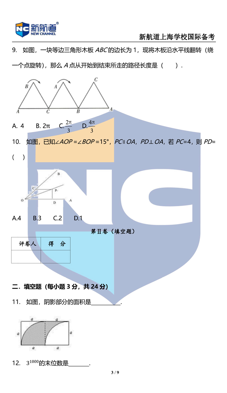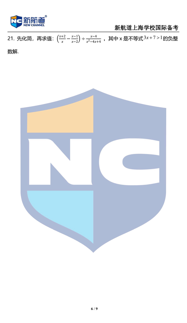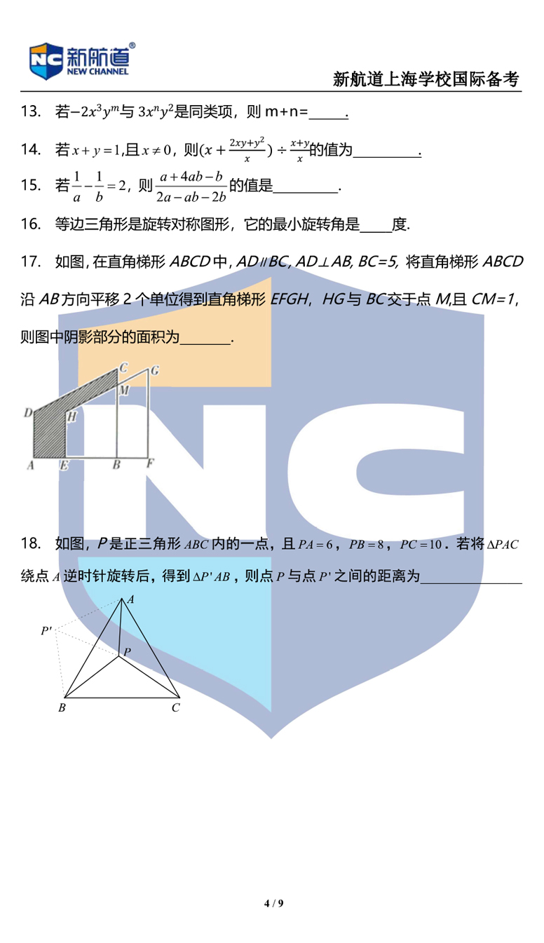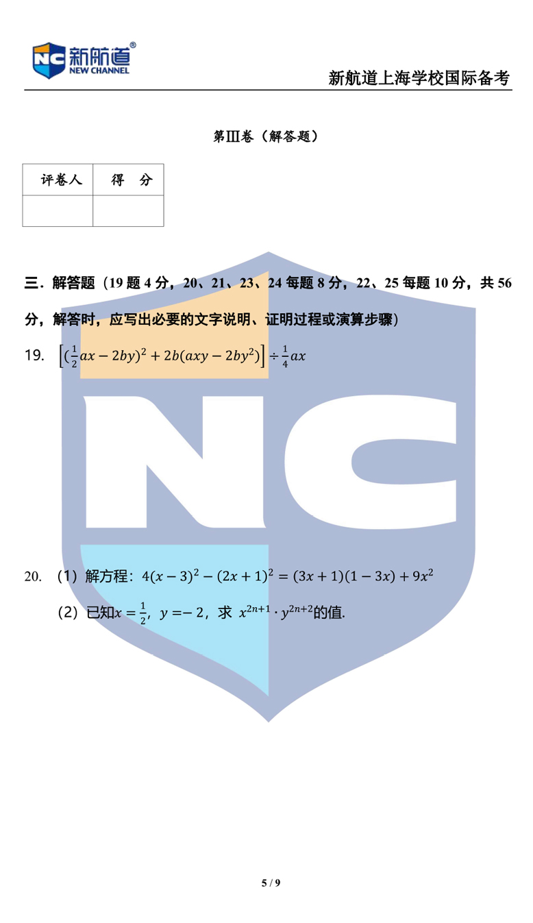 今天上海新航道国际学校小编,给同学们带来了"上海国际学校7(上)-7(下)-插班测试数学卷(中文板)"